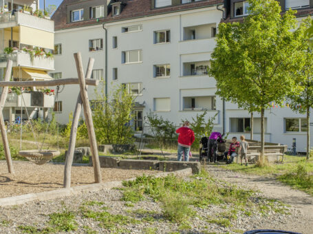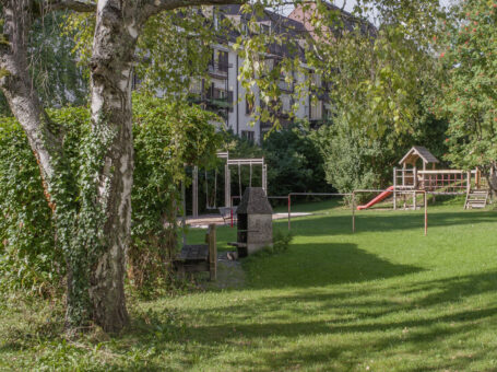 Das Zentrum der Siedlung Ilanzhof befindet sich an der Stüssistrasse 70. Hier befindet sich auch der Gemeinschaftsraum. Zum Irchelpark sind es ein paar Schritte. Auch der Zürichbergwald ist schnell erreicht. Mehrere Bus- und Tramlinien verbinden das Quartier mit der Innenstadt.