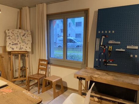 Ein Atelier-Raum der von allen Bewohner:innen im Ilanzhof für kreative Aktivitäten genutzt werden kann. Dieser ermöglicht und fördert Begegnungen in Form eines kreativen Austausches innerhalb der Siedlung.