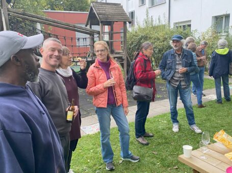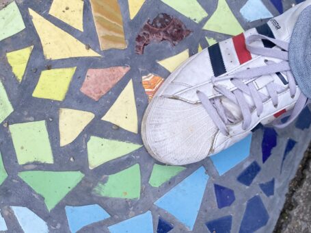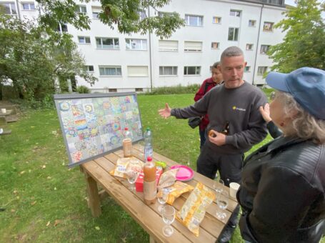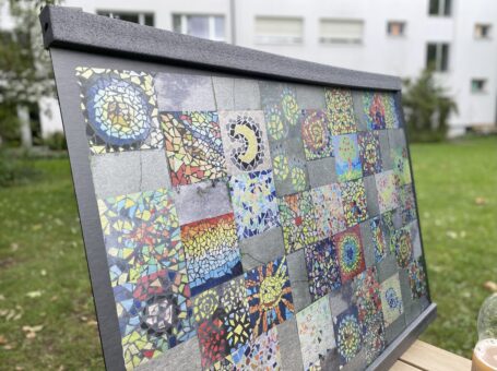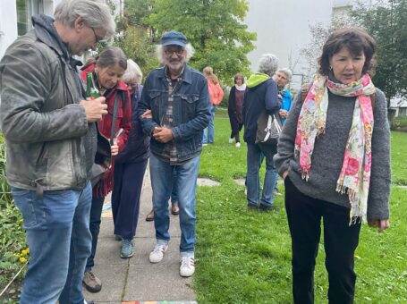Trotz etwas garstigem Wetter nahmen 25 Personen an der Einweihung teil – darunter auch einige der Künstlerinnen und Künstler, die hinter den einzelnen Werken stehen. In einem gemeinsamen Rundgang wurden die Mosaike bestaunt und gewürdigt.